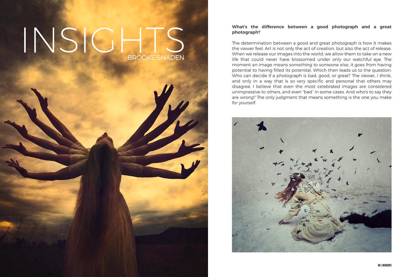 Previously available only as a section in my book Photography by the Letter, Insights is now available as a free download. It features personal and provocative Q&As with 10 incredible visual artists, including John Keatley, Ben Thomas, and Brooke Shaden (a preview appears below).