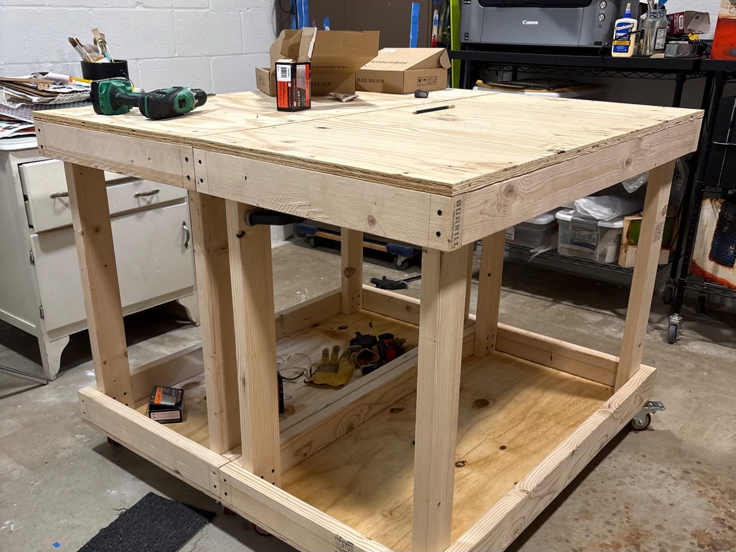 As you can hopefully see, the workbench has always been more than just the sum of its wood or steel component parts — it’s been the foundation for making, at least in my family. And when I told Adrianne that I would make my own benches and build out a studio space on day one, I really did mean it. The problem is, all of the baggage surrounding the significance of the workbenches, including comments like “artists are a dime a dozen” (which I heard often) and whether or not I could live up to the weight of the expectations that I imposed on them came along too. For a few years, I used a folding table that we found at an estate sale, putting it up and taking it down as the spirit moved me to paint, which wasn’t as often as I had hoped, but that’s another story. I’ve said for a long time that I really am happiest when I’m making — and that could mean painting or drawing, writing, taking photographs, or just plunking around on one of my synthesizers. There’s a reason that I call my podcast Process Driven. Despite the lack of new episodes in a very long time (which I am in the midst of addressing), that’s really what I am. I love process in all its forms, and not just my own. In fact, I’m probably the least interested in my own processes because they are so familiar to me, which is why I love talking with other people about theirs. So the benches, despite seeming like a simple add, have actually been much more difficult to implement than I thought they would be, and I think that being in therapy for the past nine months or so has really helped me develop new tools to help get over the stuff around expectations and finally build them. Plus, we recently had a new roof done on the house and the roofers left behind several sheets of plywood, which I ended up using as the bench tops. So the running joke is that these benches cost $15,065 — $65 for the 2x4s and $15K for the plywood.