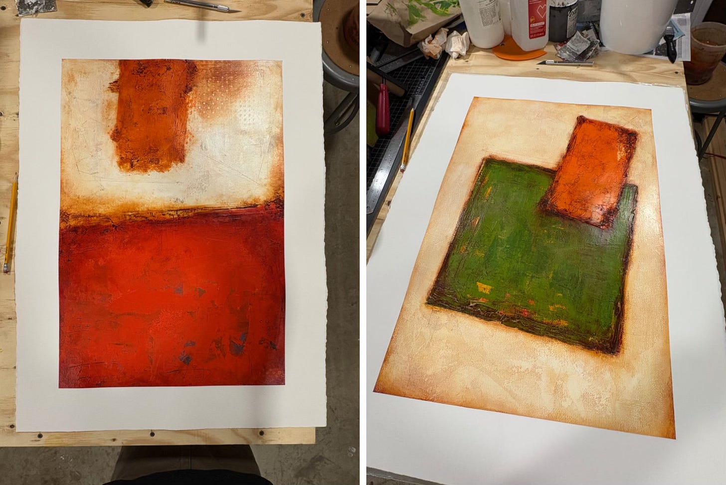 This morning, my therapist noted how my energy changed when I was telling her about all of this and she asked me why finishing the benches seems to have inspired all of this creative energy. I told her that I thought it was two things. Number one was realizing that the anxiety I felt for years over the benches was ultimately much ado about nothing. I had built them up in my head as some sort of mountain that I had to ascend, or some sort of imaginary hurdle that I had to jump in order to “earn” being creative and living an artistic life. Neither of which turned out to be true, of course — especially the part about earning an artistic life. The other thing was that I’m finally able to distinguish between value and worth when it comes to what I make. I’ve used the two terms interchangeably for years — and maybe you have too — but the fact is that they are very different. Value is personal and refers to the importance or usefulness of something to the individual. It’s an internal measure, whereas worth is external and typically refers to the monetary value of something, which is largely outside of our control. For example, the two (soon to be three) paintings that I’ve been working on over the past couple weeks have value to me regardless of whether or not they sell. I’ve learned more about materials, made insights about composition, and tried techniques that will make their way into future work — all of which mean more to me than the transactional value of what they are worth to a potential buyer. Don’t get me wrong, if any of my work resonates with you, I would love to sell it to you. I can’t say what my work is worth, which is why I find pricing it so difficult — that’s largely the decision of the market. What I can do is decide (or maybe realize) how much value I get from the doing. In that realization, I’m starting to see myself in a different light, which is pretty terrific.